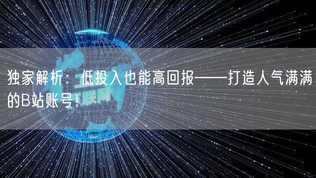 通过以上策略的实施,相信你也可以在B站打造一个人气满满的账号,实现低投入高回报的目标。让我们一起努力,成为B站上的佼佼者!