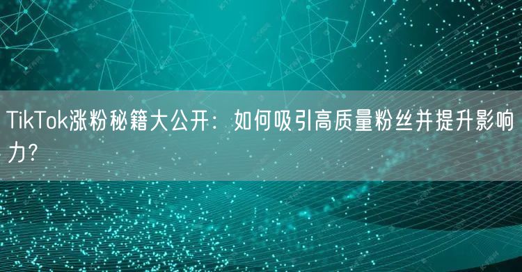 通过制定策略、创作优质内容、精准推送、与粉丝互动以及扩大影响力等方法,你可以在TikTok上吸引更多高质量粉丝并提升个人影响力。不断学习和优化你的策略,成为TikTok达人!